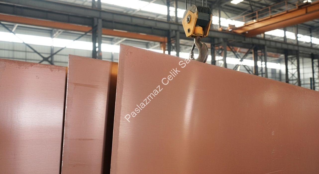 Kimyasal Değerler: Atmosferik korozyon direncini sağlayan bakır (Cu), krom (Cr), ve nikel (Ni) gibi alaşım elementlerini içerir. Bu elementler, yüzeyde koruyucu pas tabakasının oluşumunu teşvik eder.